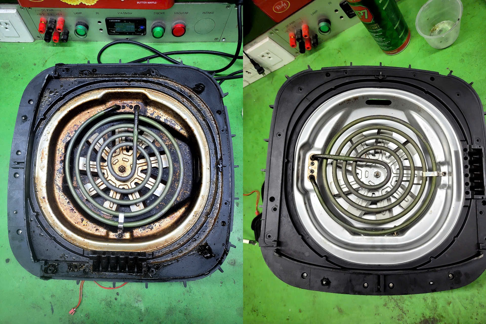 Sau mỗi lần sử dụng, dầu mỡ, mảnh thức ăn và cặn cháy tích tụ trong khay chiên, mâm nhiệt và quạt gió. Nếu không được vệ sinh kịp thời, nồi chiên không dầu sẽ: